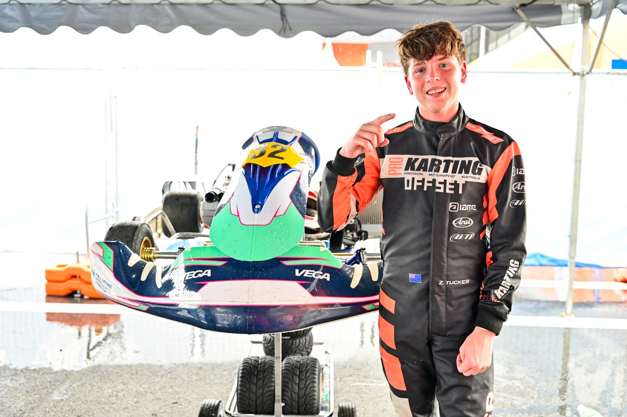 Zach lined up in the 14 to 19 years group, vying with 59 drivers from around the world for the international title. All raced the same type of kart but had to swap their engines with another driver after each heat. This approach emphasised pure driving ability and prevented technical and financial disparity.